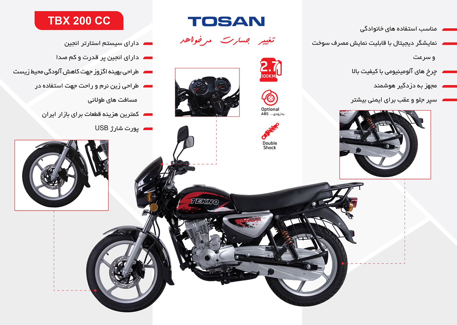 موتور سیکلت طرح باکسر مدل 200 با تمرکز بر استحکام، دوام و کارایی اقتصادی، یک شریک کاری خستگیناپذیر برای شرایط سخت و استفادههای مداوم است. این موتورسیکلت شهری، از یک پیشرانه تک سیلندر ۱۹۸ سیسی هوا خنک بهره میبرد که توانی معادل ۱۰ کیلووات تولید میکند. برجستهترین ویژگی این موتور بنزینی، مصرف سوخت استثنایی آن در حدود ۲.۱ لیتر در هر صد کیلومتر است که در کنار باک 12 لیتری، پیمایش مسافتهای بسیار طولانی را بدون نیاز به سوختگیری ممکن میسازد.